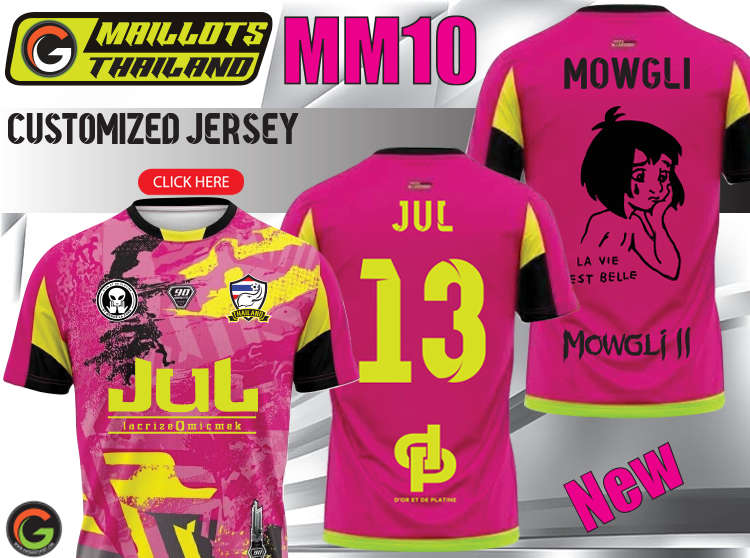 Retrouvez tous les maillots thailande,90Minutes’Versus,Eureka& Cadenza de chez Le sponsor sur le devant du maillot et offert ainsi que le flocage (nom + numéro) au dos